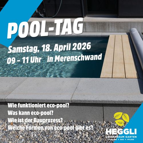 Am Samstag, 18. April 2026, laden wir Sie von 9 bis 11 Uhr herzlich zu unserem Pool-Tag in Merenschwand ein. Erfahren Sie alles rund um das Thema eco-pool.